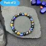 Natural Stone Beads for Protection, Luck & Wealth, April Birthstone Gift for Women & Men, Valentine's Day Jewelry with Blue Evil Eye Beads, Unisex Birthday Party Accessories.